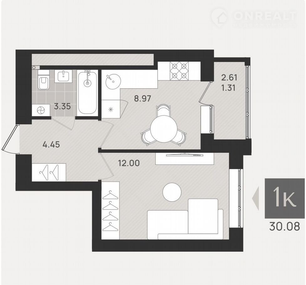 Общая площадь 30.1 м2