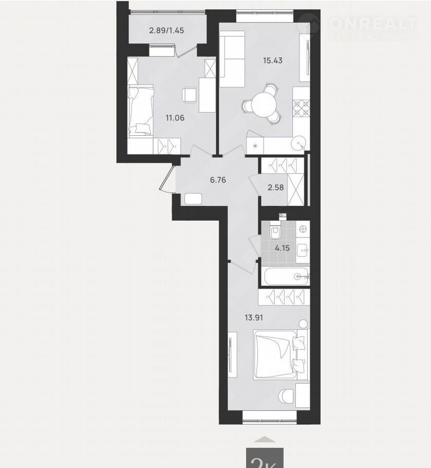 Количество комнат 2