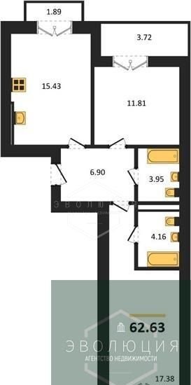 Общая площадь 62.6 м2