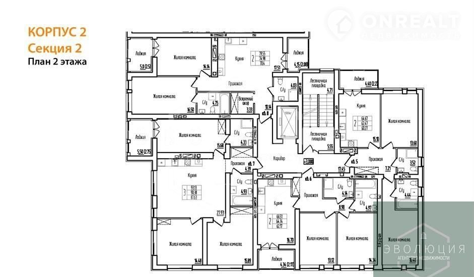 2-комнатная квартира, 64.3 м2, этаж 2 / 10, на продажу в Калининграде