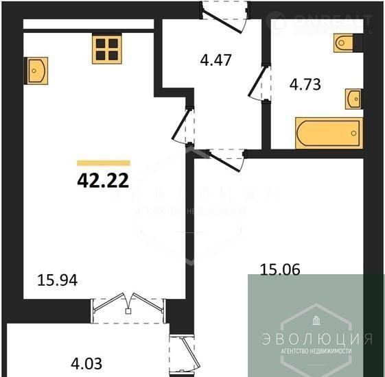 Общая площадь 42.2 м2