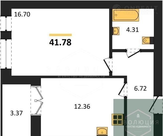 Общая площадь 41.8 м2