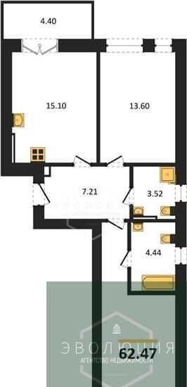 Общая площадь 62.5 м2