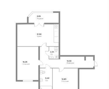 Квартира 78,90 кв.м . Кухня - Гостиная 21,30 кв.м просторная с выходом на лоджию , Комнаты 16,26 кв.м и 13,80 кв.м квадратные солнечные , Два санузла .