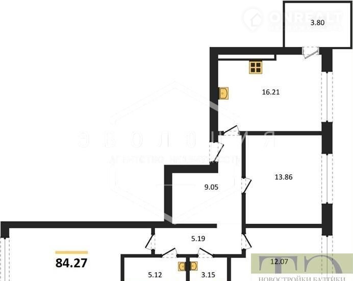 Квартира: 3 к 84,27 кв.м., 2 этаж в комплексе Невский парк, 1 очередь, корп.2, сдача: 4кв. , этажей: 9, адрес Калининград г., Александра Невского ул., , Застройщик: КалининградСтройИнвест.