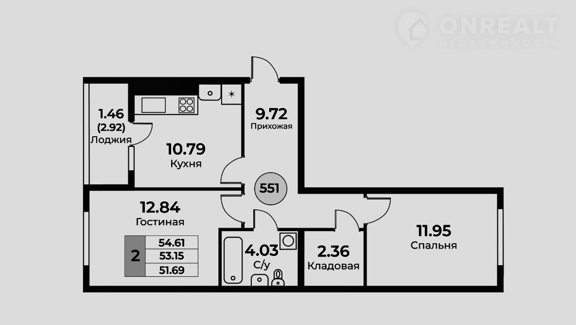 Общая площадь 53 м2