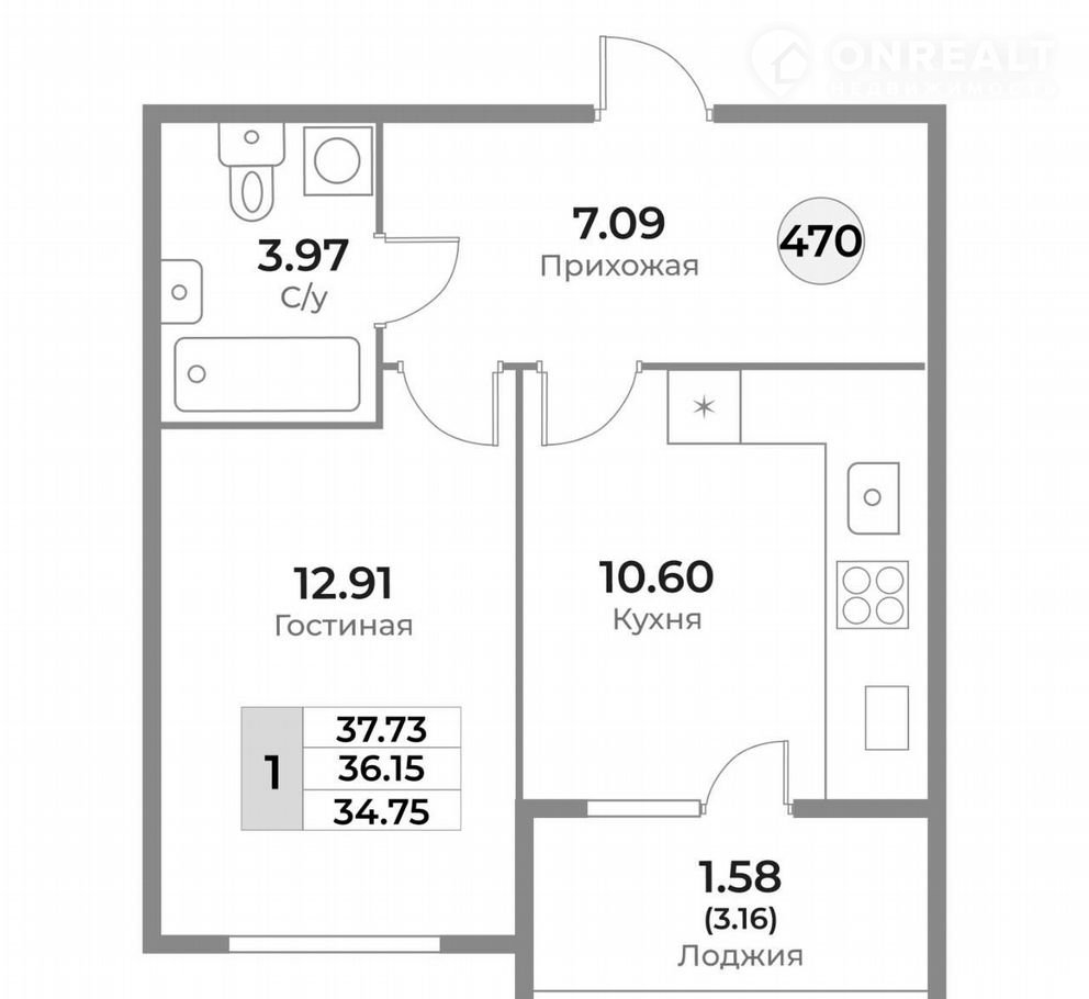 Балкон, лоджия 1 лоджия