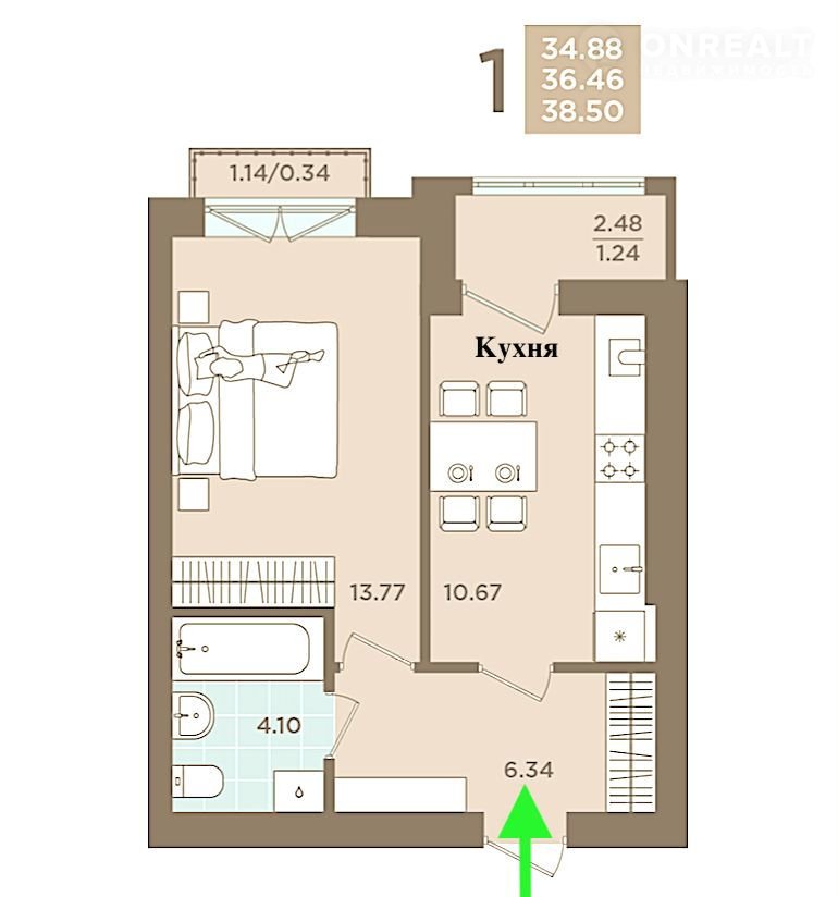 Комната - 14,1 м².