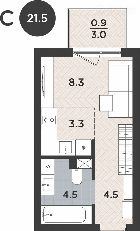 Общая площадь 21.5 м2