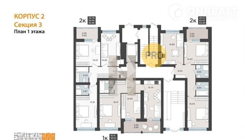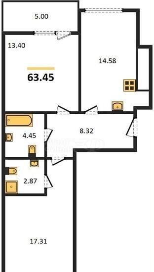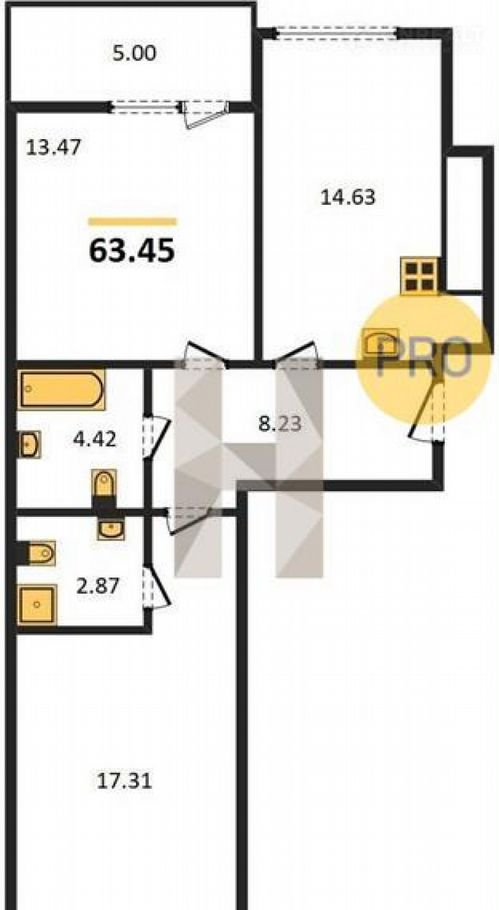 Общая площадь 63.5 м2