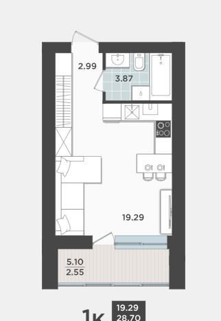 Общая площадь 28.7 м2