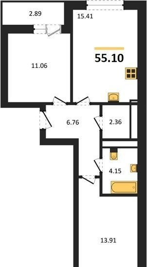 Общая площадь 55.1 м2