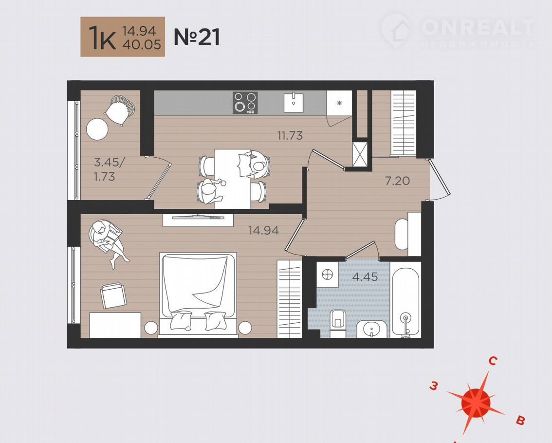 ✅ В продаже 1 комнатная квартира №21, в Жилом комплексе «Мой город» , расположенного в г. Калининград проспект Советский