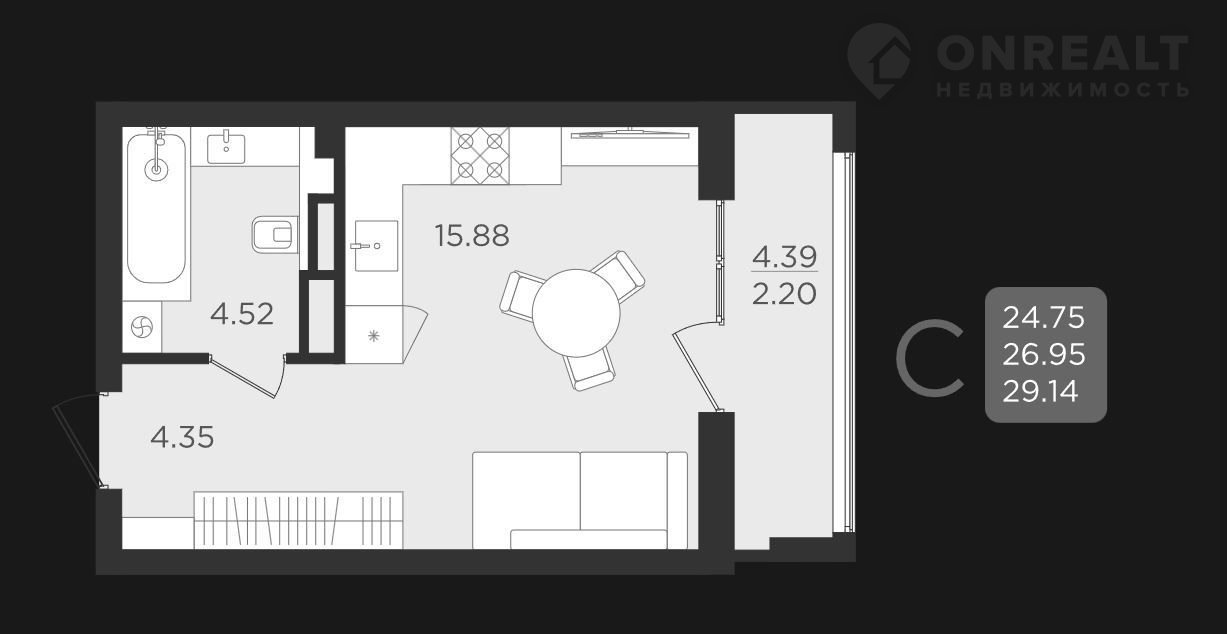 Общая площадь 29.1 м2