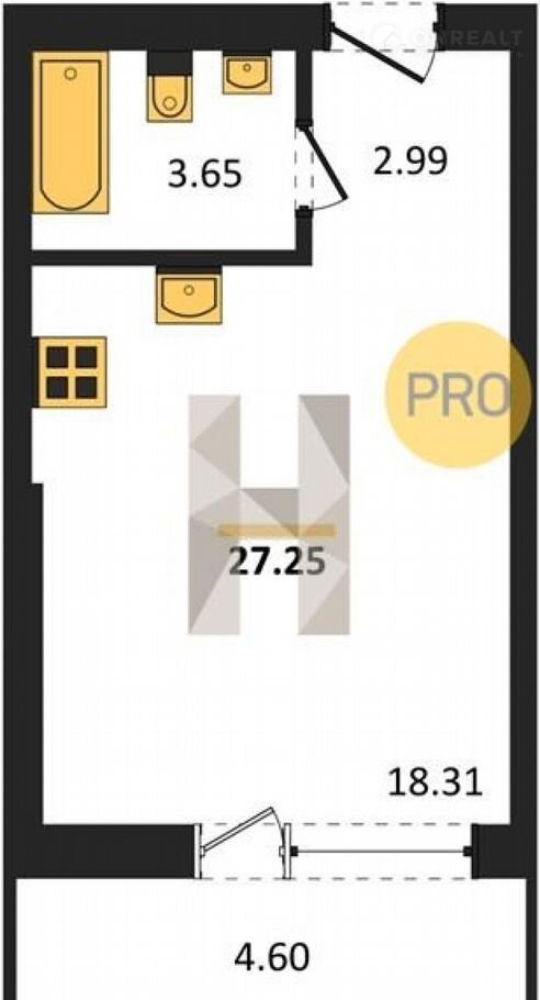 Общая площадь 27.3 м2