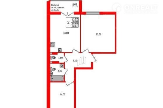 Балкон, лоджия 1 лоджия