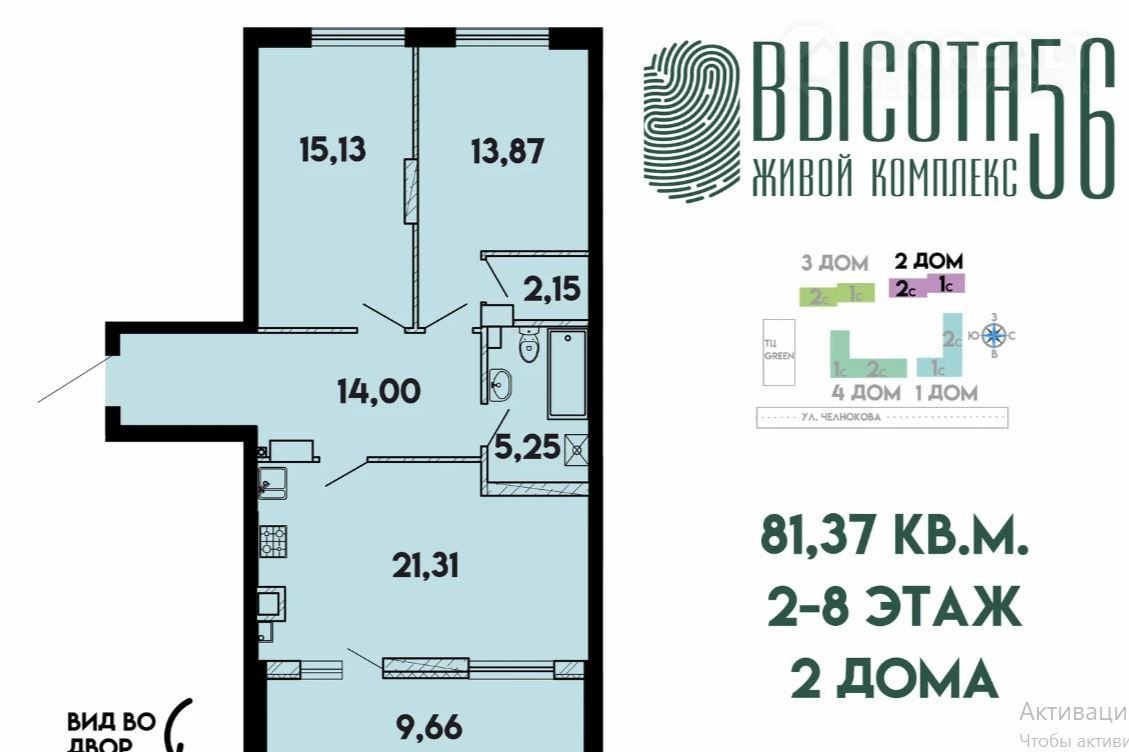 2-х кoмнатная квартирa №126 в ЖК «ВЫСОTА 56»