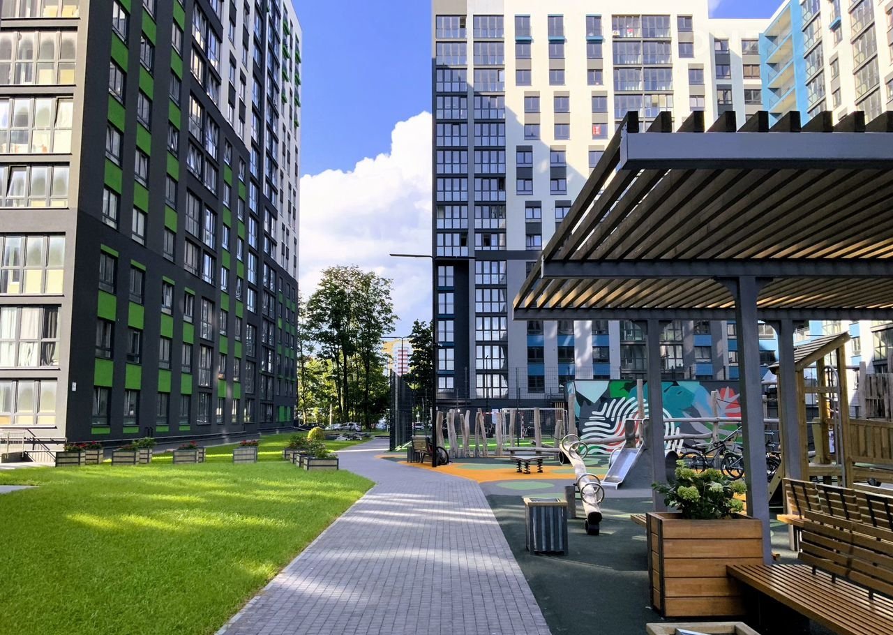 Во дворе полноценные зоны отдыха. Невероятная детская площадка с развивающими и креативными элементами.