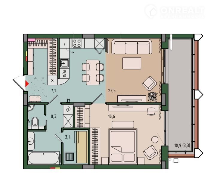 Балкон, лоджия 1 лоджия