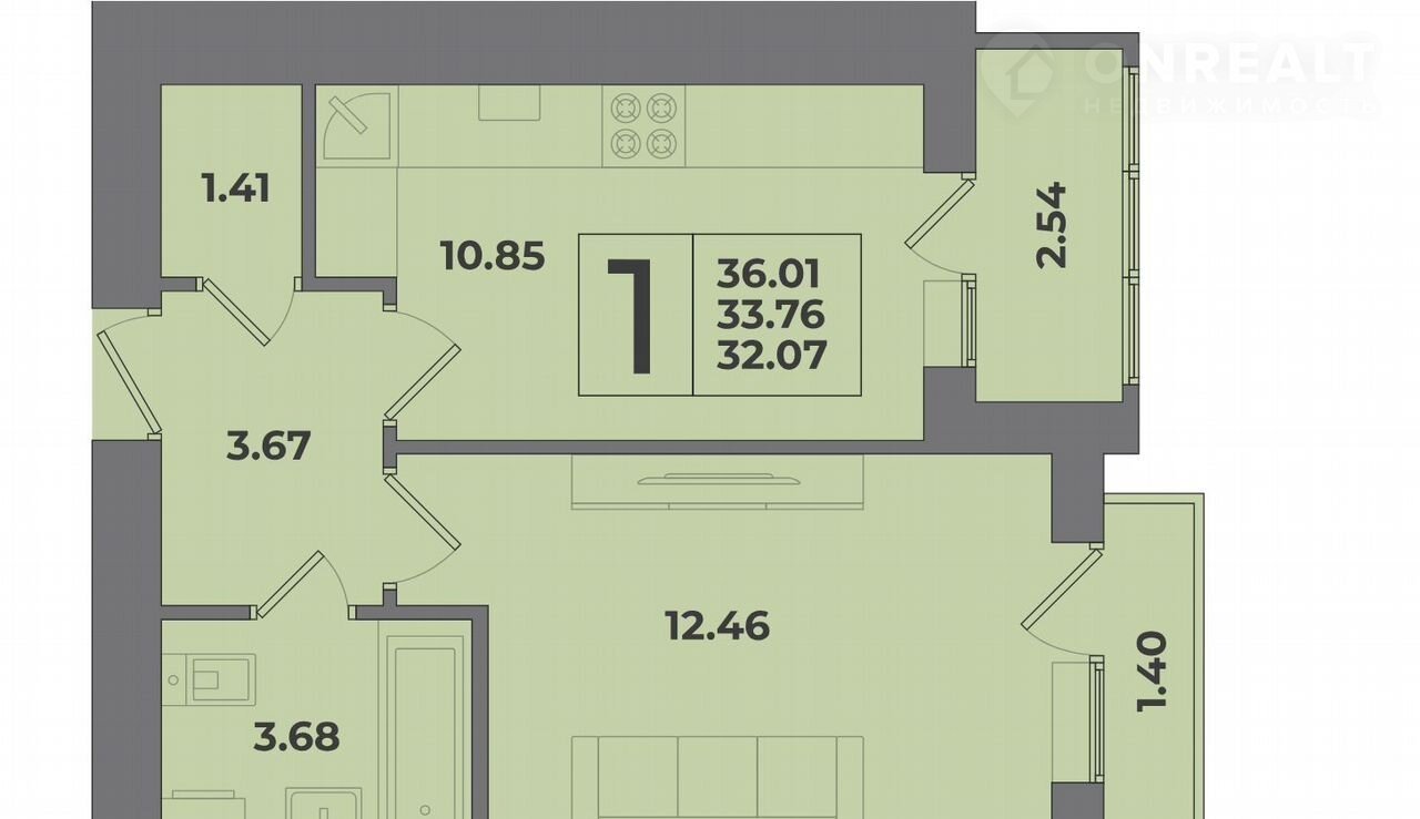Общая площадь 36 м2