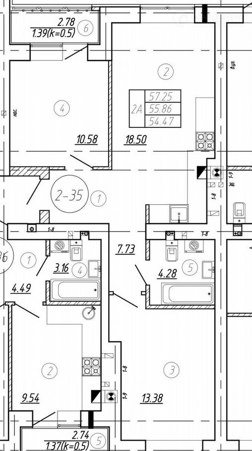 2-комнатная квартира, 58.5 м2, этаж 3 / 9, на продажу в Калининграде