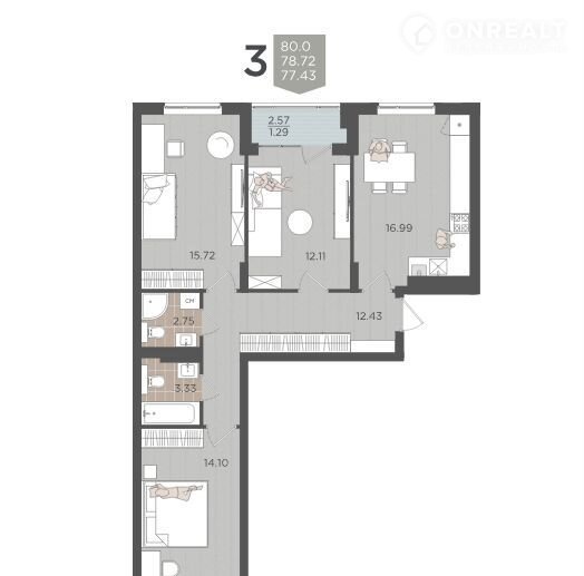 Общая площадь 78.7 м2