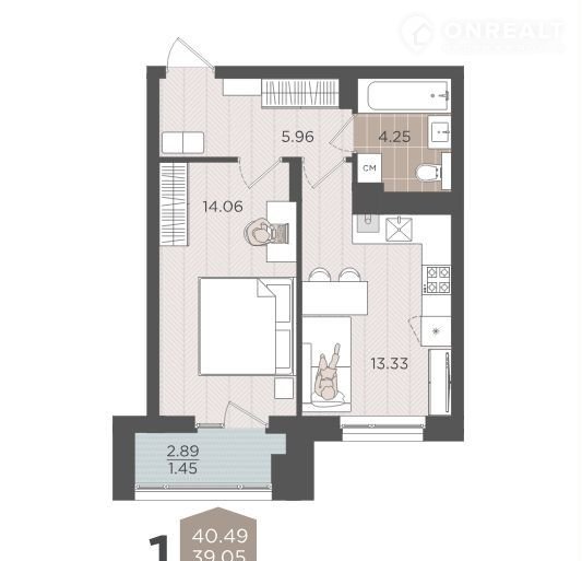Балкон, лоджия 1 лоджия