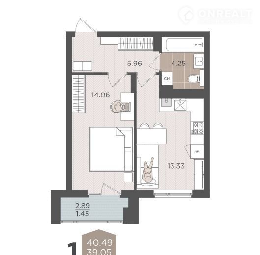 Балкон, лоджия 1 лоджия