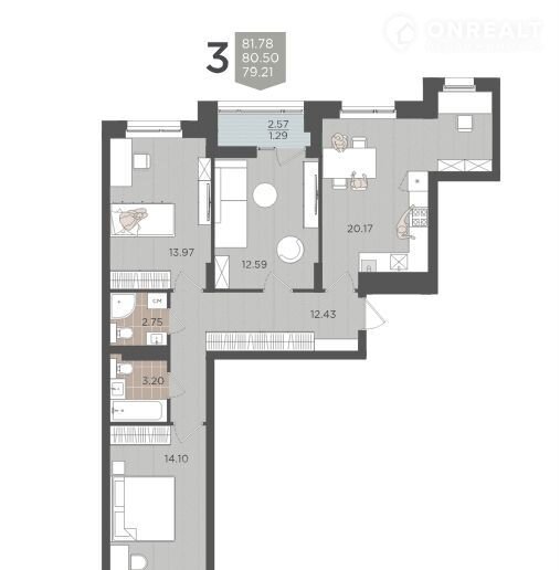 Общая площадь 80.5 м2