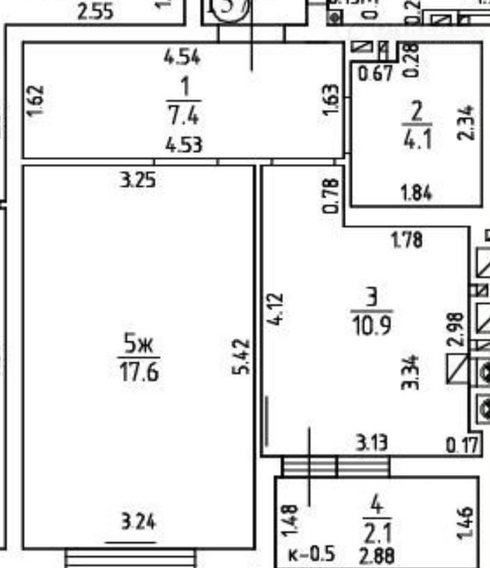 Однoкoмнaтнaя квaртира нa 5 этажe 9-тиэтaжнoго дома