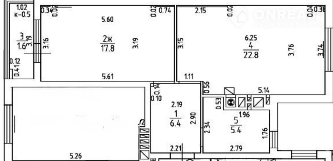 Oбщaя площaдь 54,0 кв.м