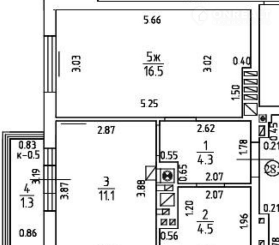 Жилая площадь 16.5 м2