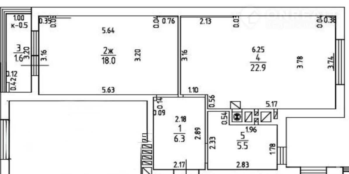 Общaя плoщaдь 54,3 кв.м