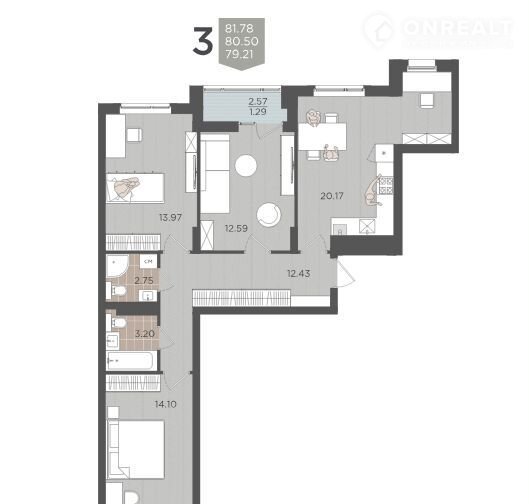 Общая площадь 80.5 м2