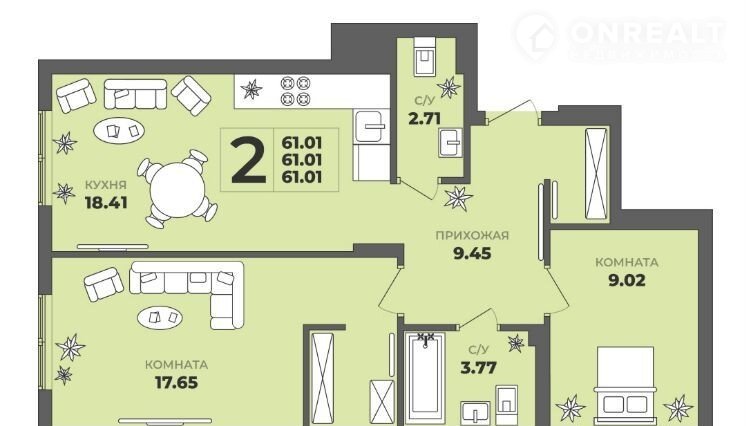 Общая площадь 61.1 м2
