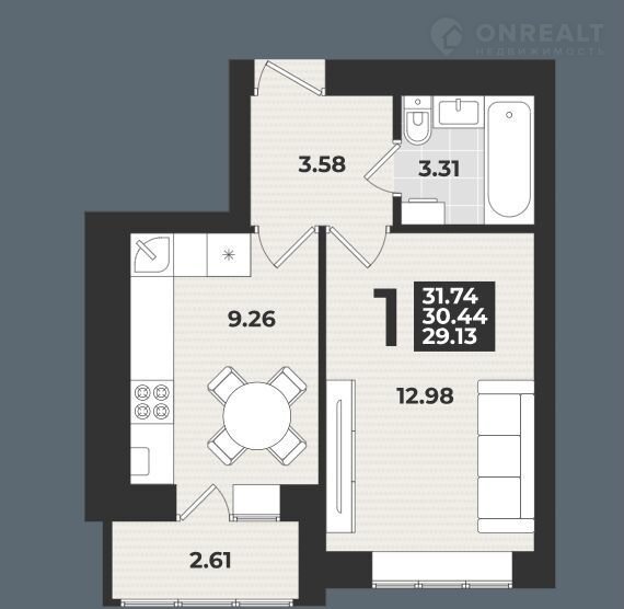 Общая площадь 31.7 м2