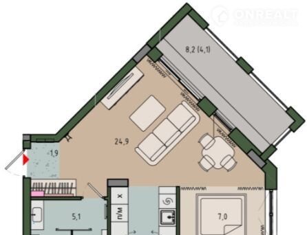 Площадь кухни 24.9 м2