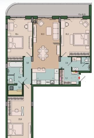 Площадь кухни 32.4 м2