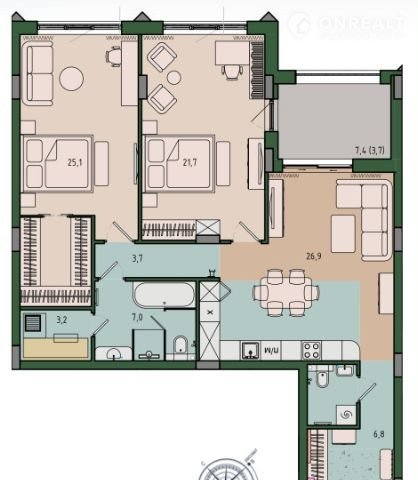 Общая площадь 100.7 м2