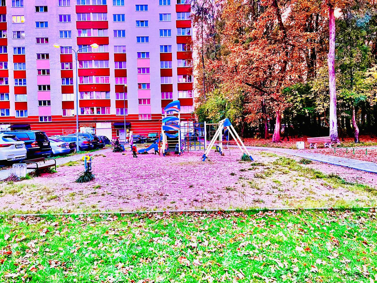 Рядом с домом есть детская и спортивная площадки для детей всех возрастов.