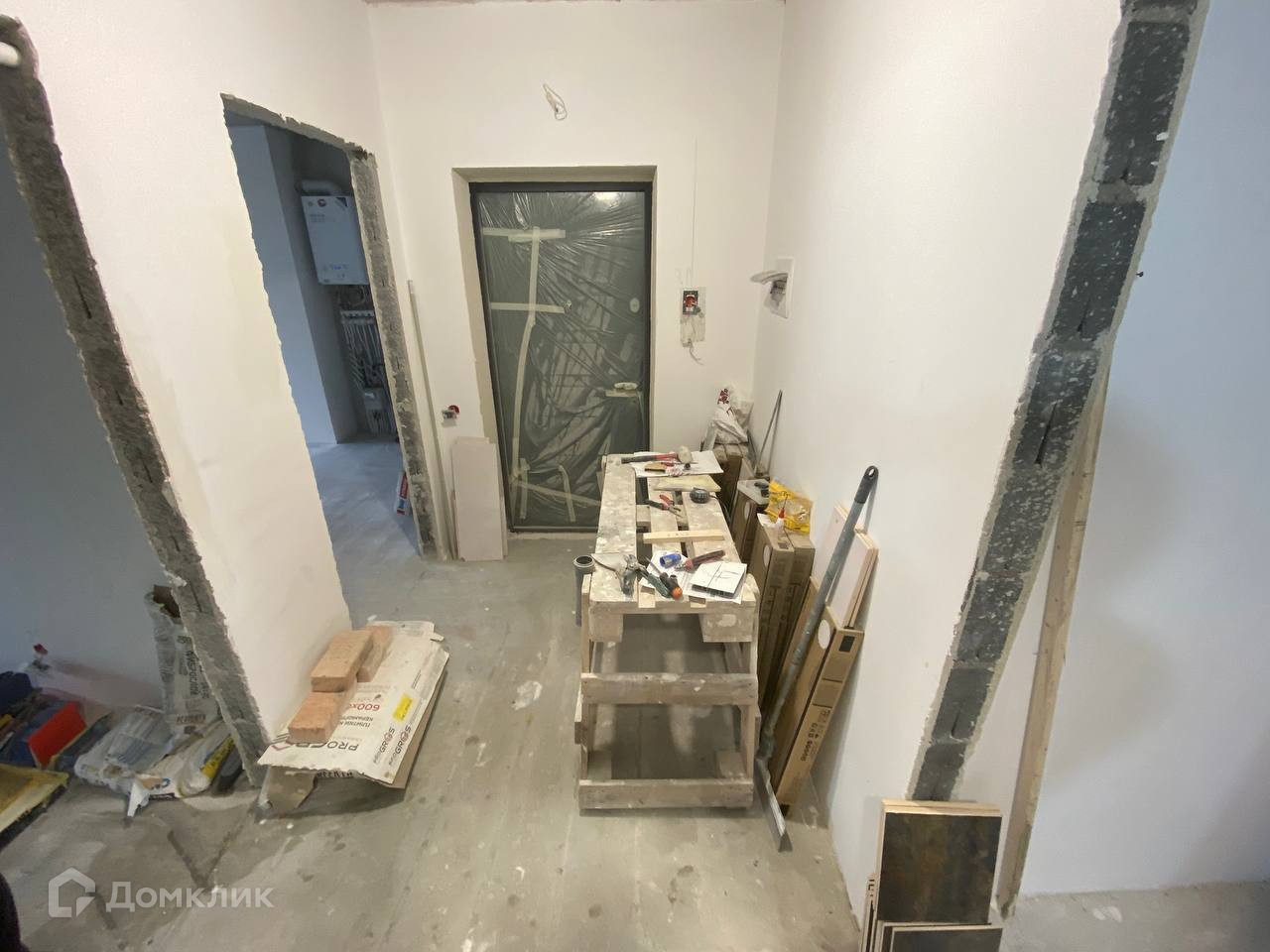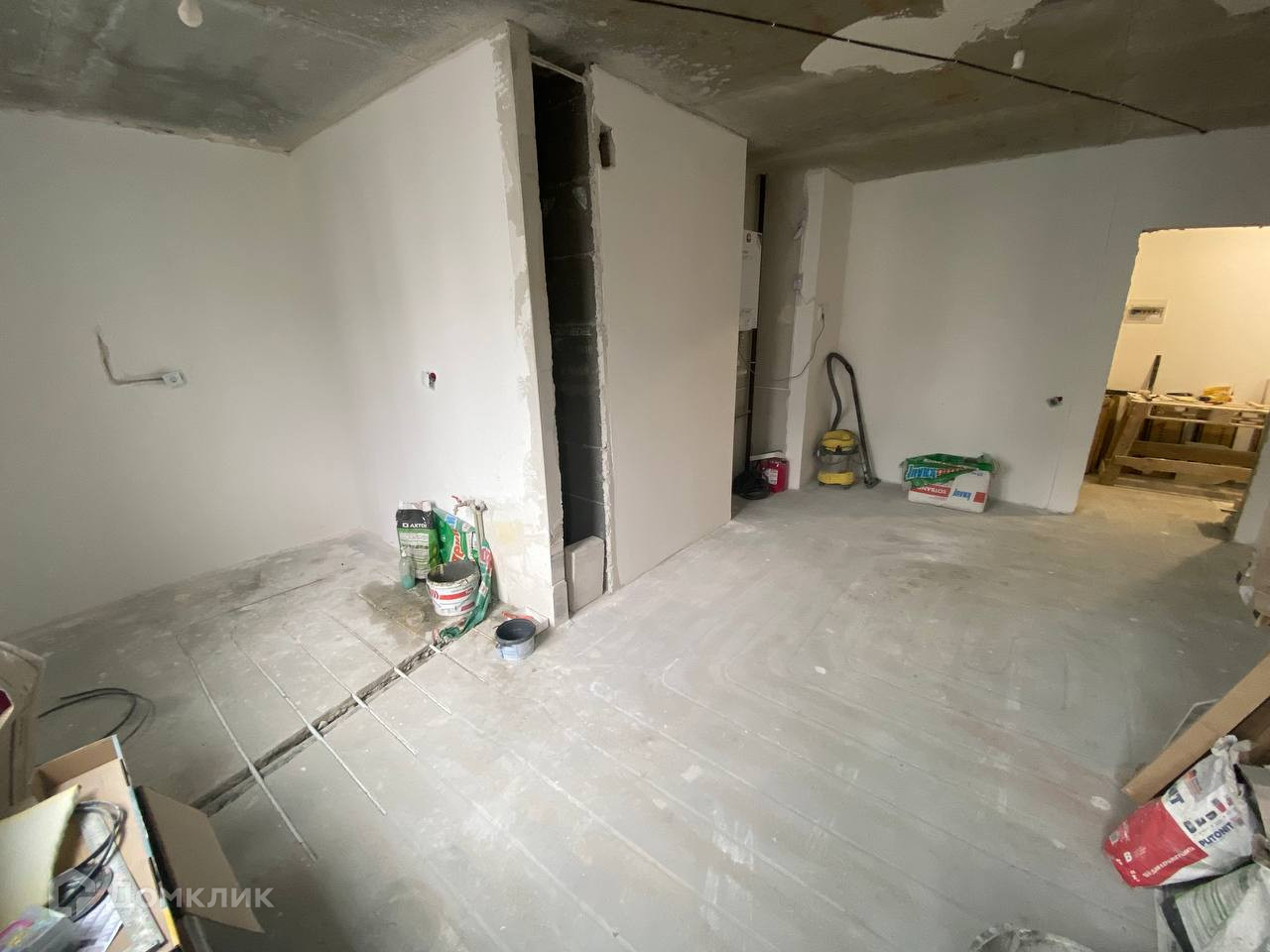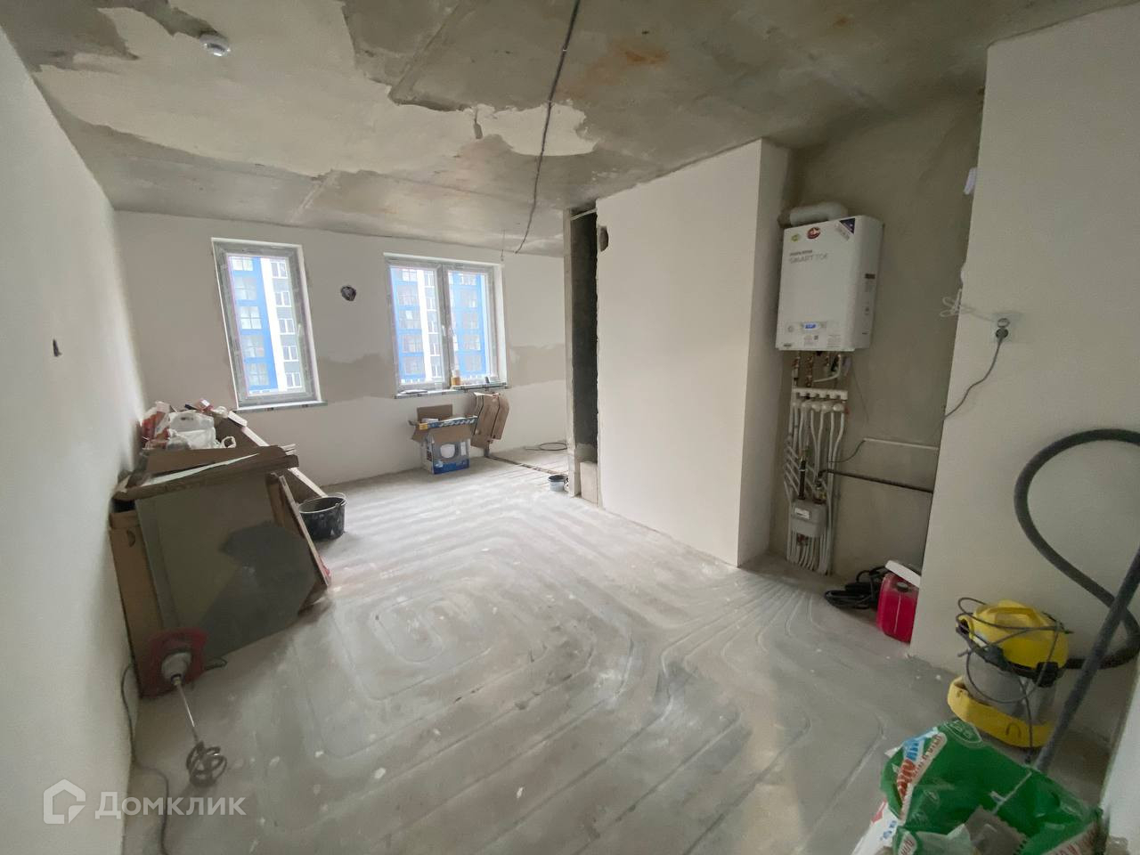 В квартире начат ремонт, зашпаклеваны стены, смонтирована система «тёплый пол», полностью будет готов санузел - автономное отопление (газовый двухконтурный котёл).