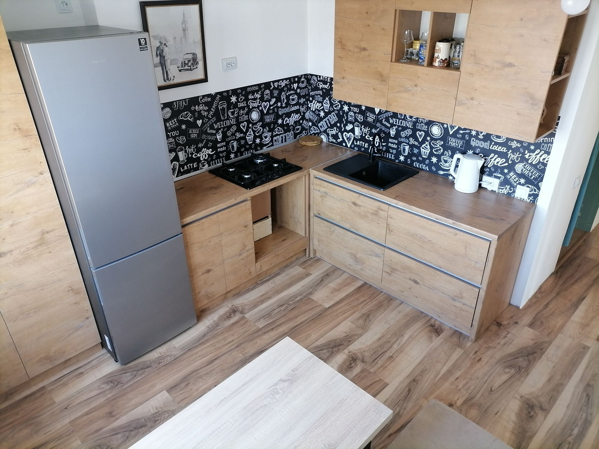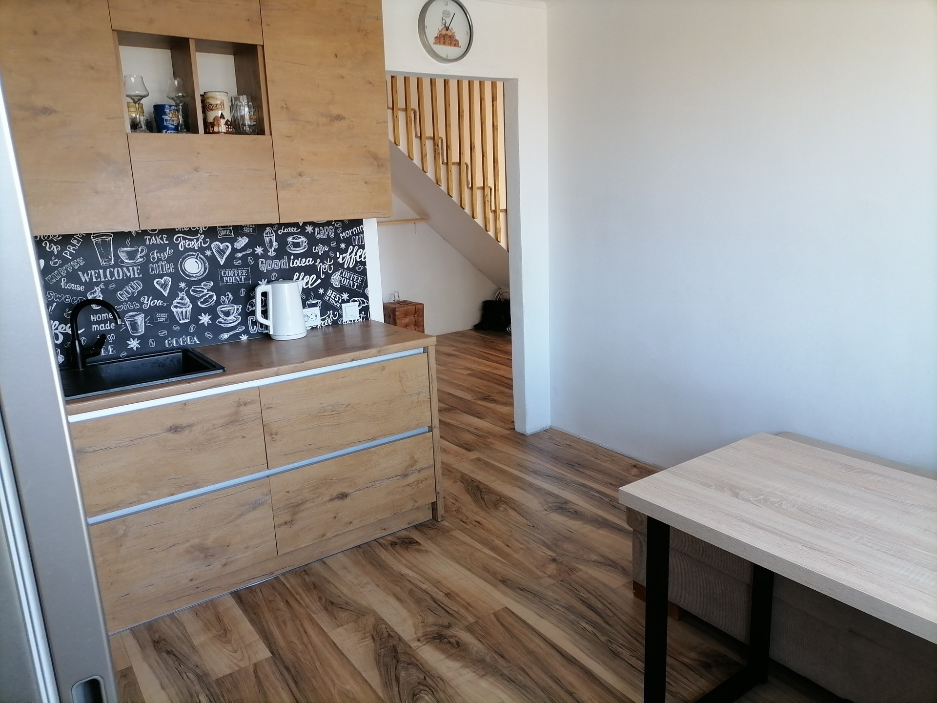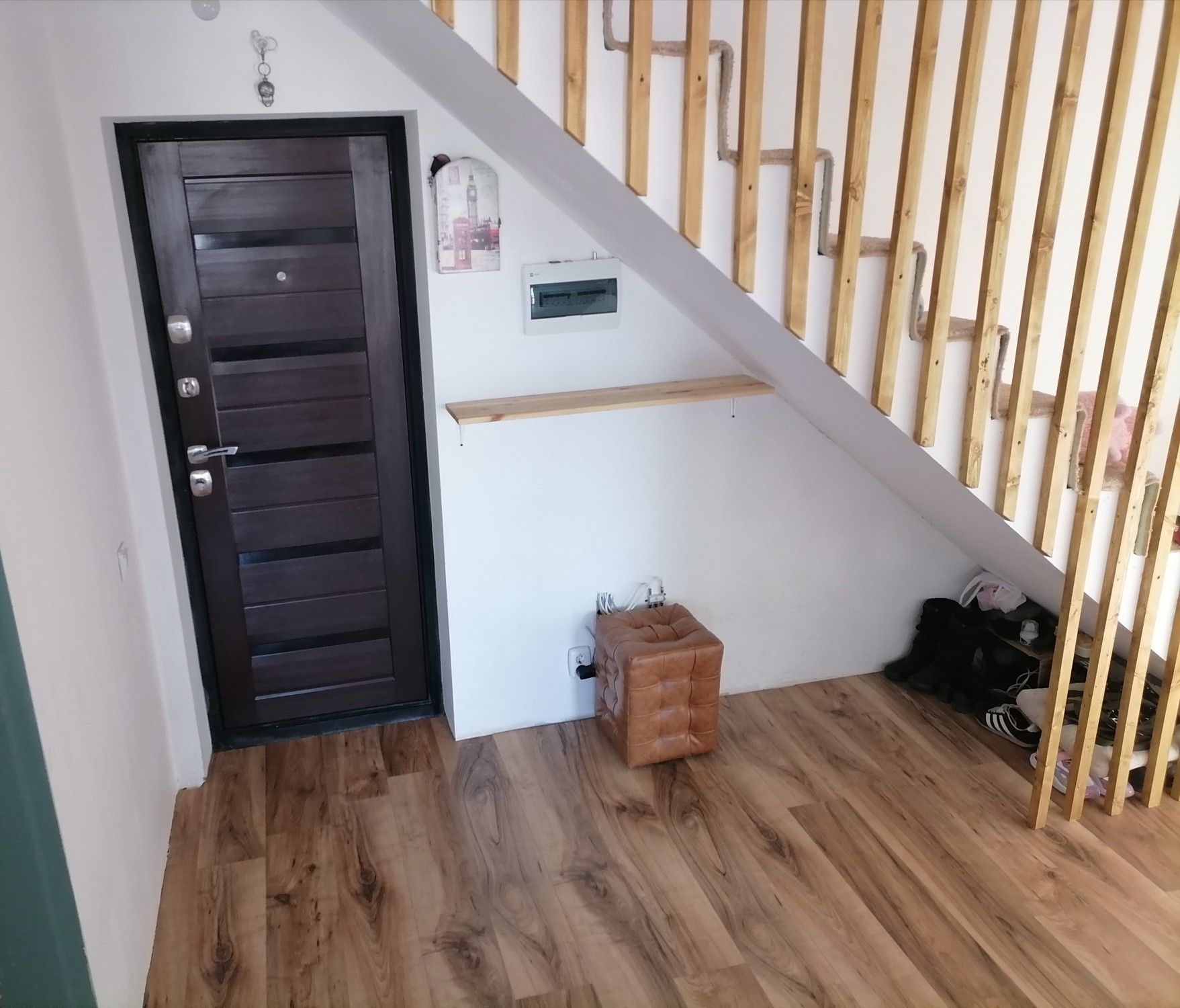 Тёплый пол в коридоре, санузеле на первом уровне и на кухне.