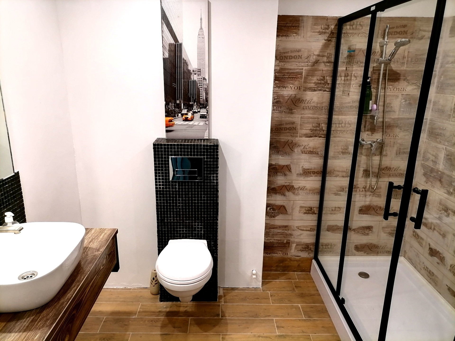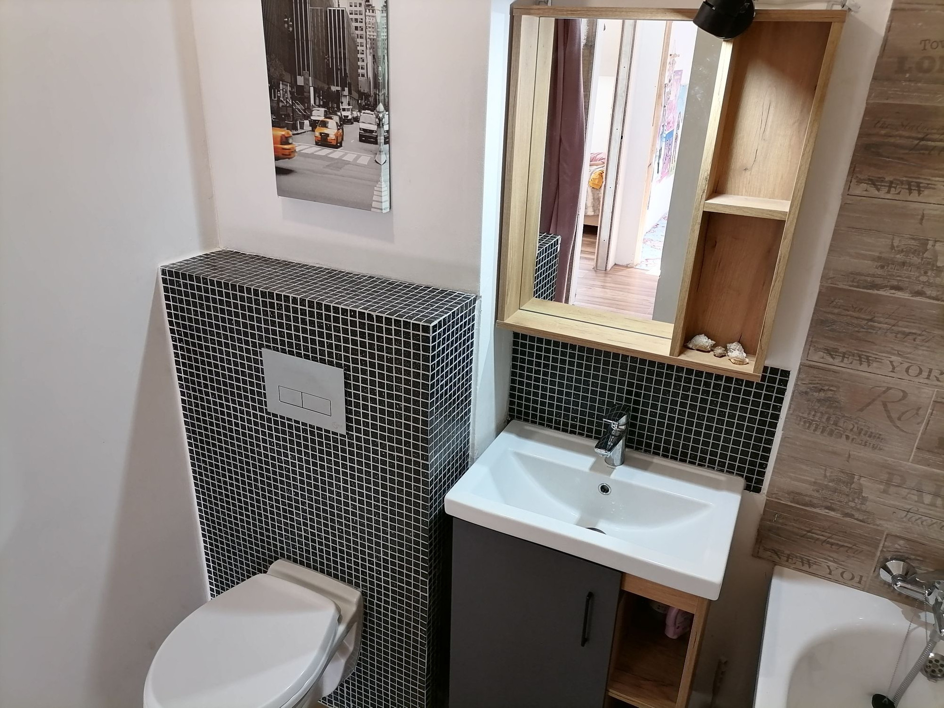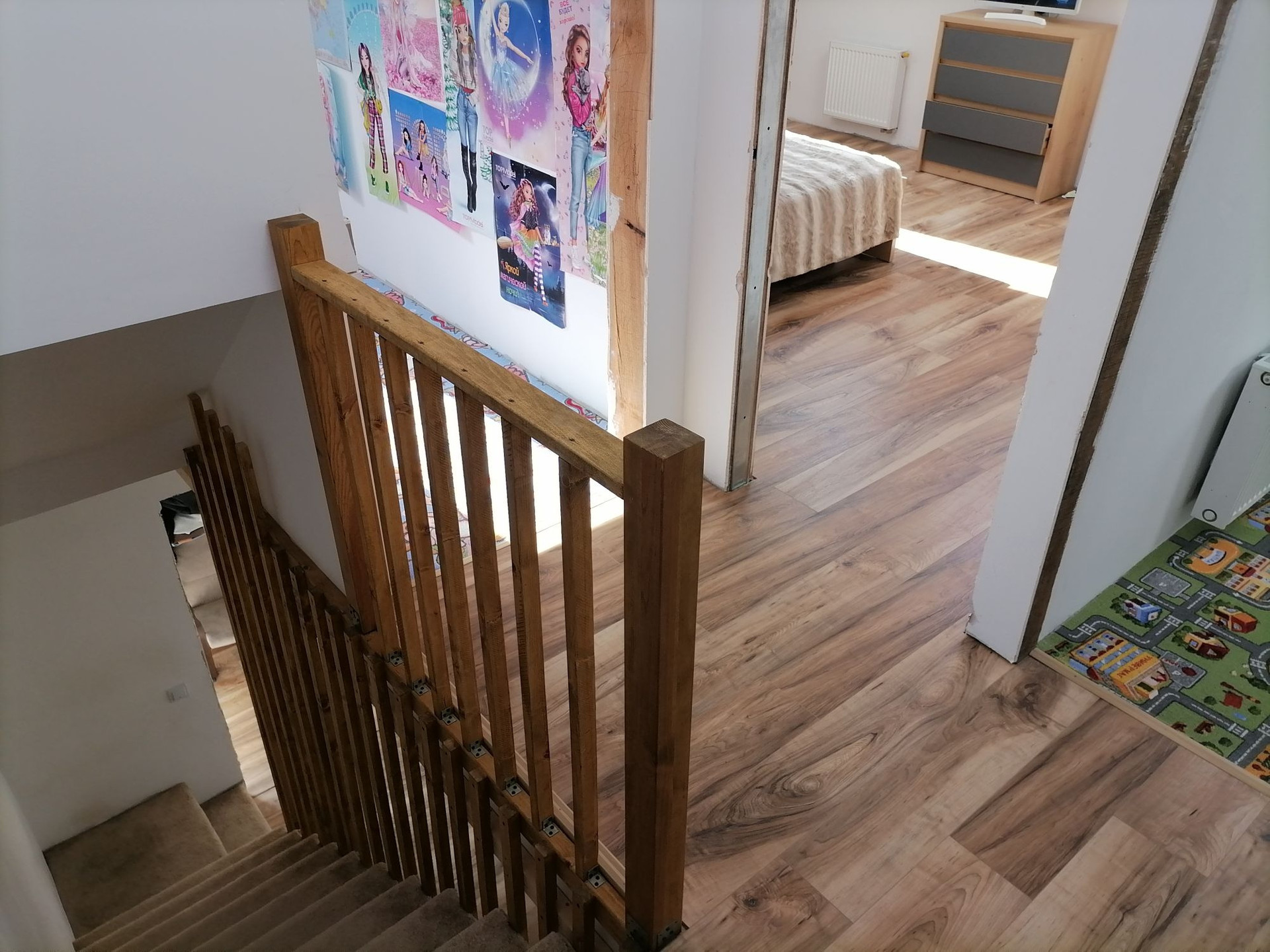 Тёплый пол в коридоре, санузеле на первом уровне и на кухне.