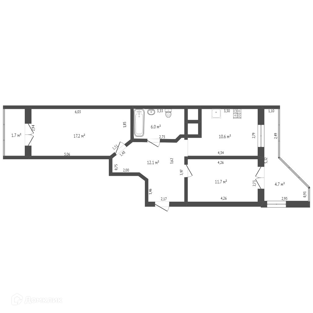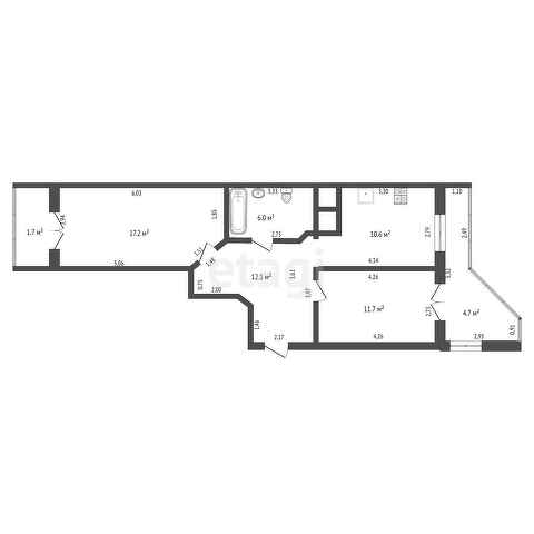 Общая площадь квартиры 57,6 м2, жилая 17,2+11,7, комнаты раздельные, выходят на разные стороны дома,кухня 10,6 м2, санузел 6 м2, 2 балкона 1,7+4,7. Состояние серый ключ-это возможность проявить свой творческий и дизайнерский потенциал, обустроить все под себя и наслаждаться результатом!