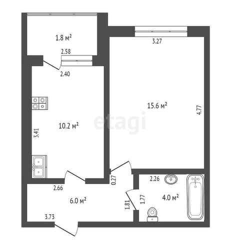 Представляем Вашему вниманию однокомнатную квартиру, общая площадь 37,6 кв.м.
