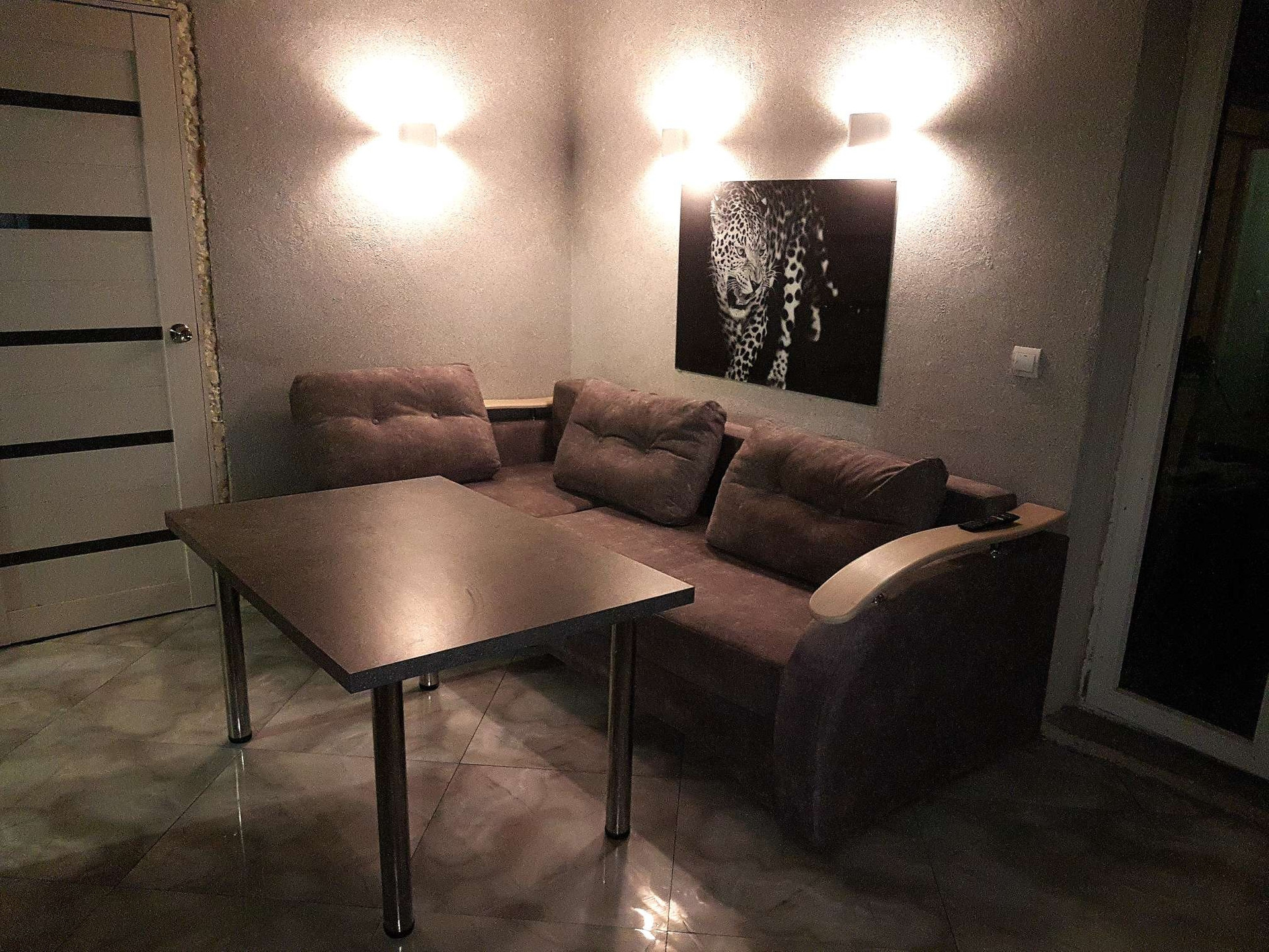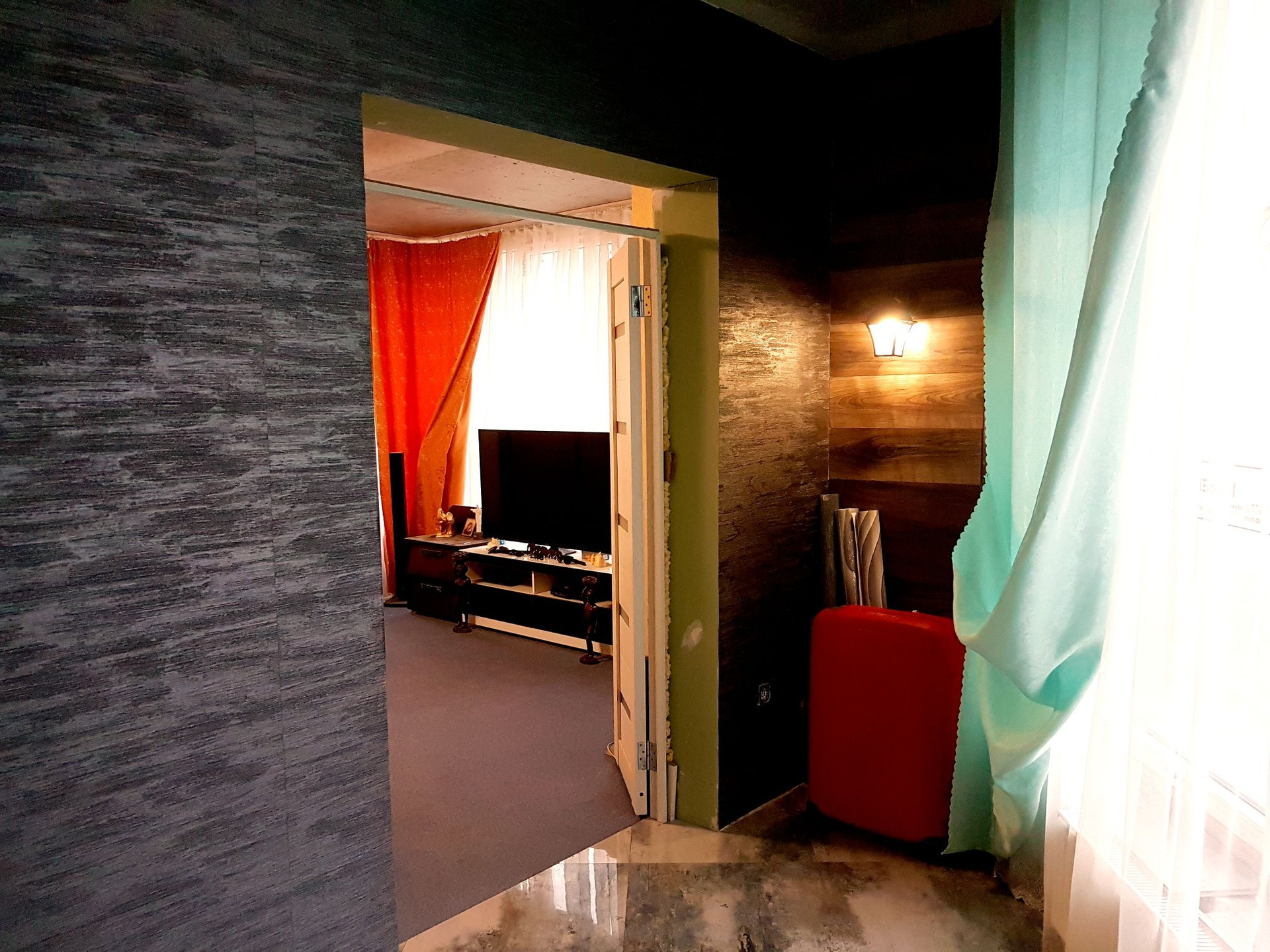 Лоджия как офис ,зеленая зона 9.5Метров.  Проделана дорогая работа . Плитка керамогранит .Теплый пол. Ванна, туалет,коридор, ккхня. На ыото все видно!  По сути я стены продаю ниже рынка , а большая часть ремонта и так идет уже в подарок!