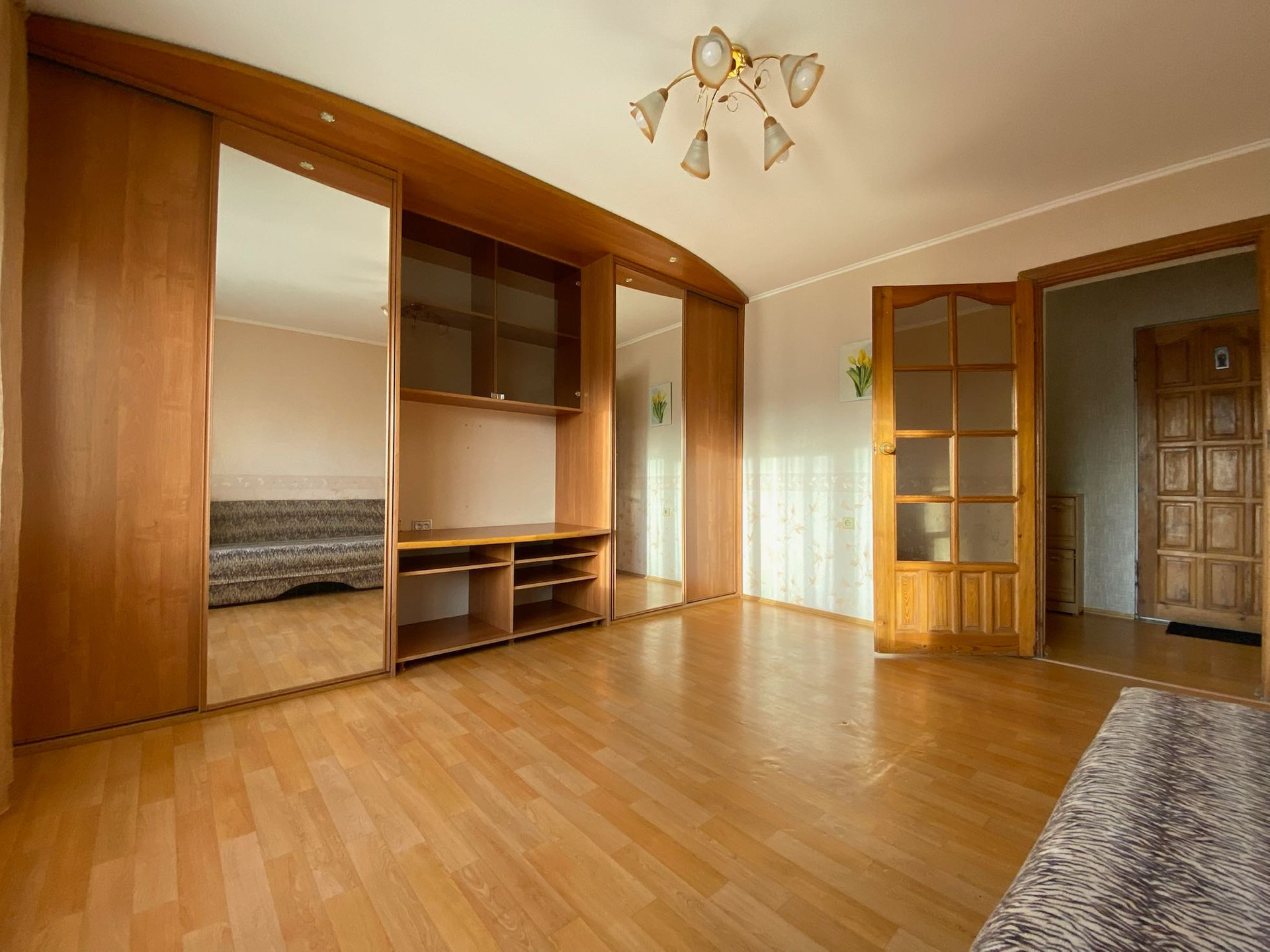 Современный ремонт, деревянные межкомнатные двери, ванная комната в кафеле, пластиковые окна, застекленный балкон.