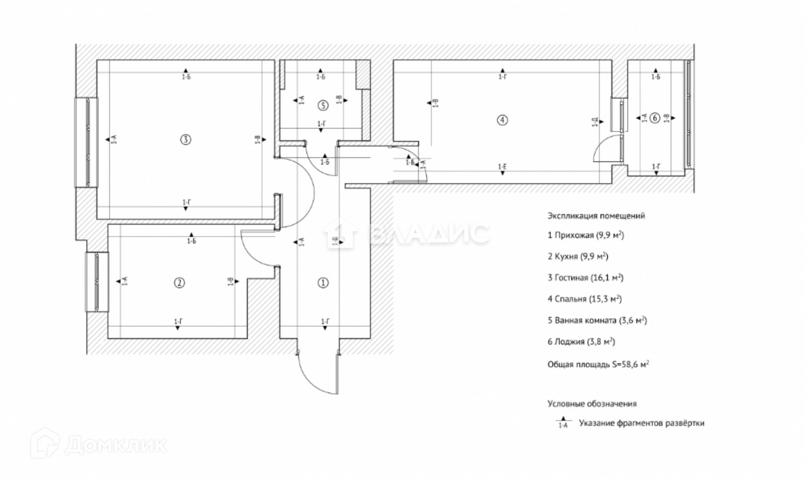 Общая площадь 59 м2
