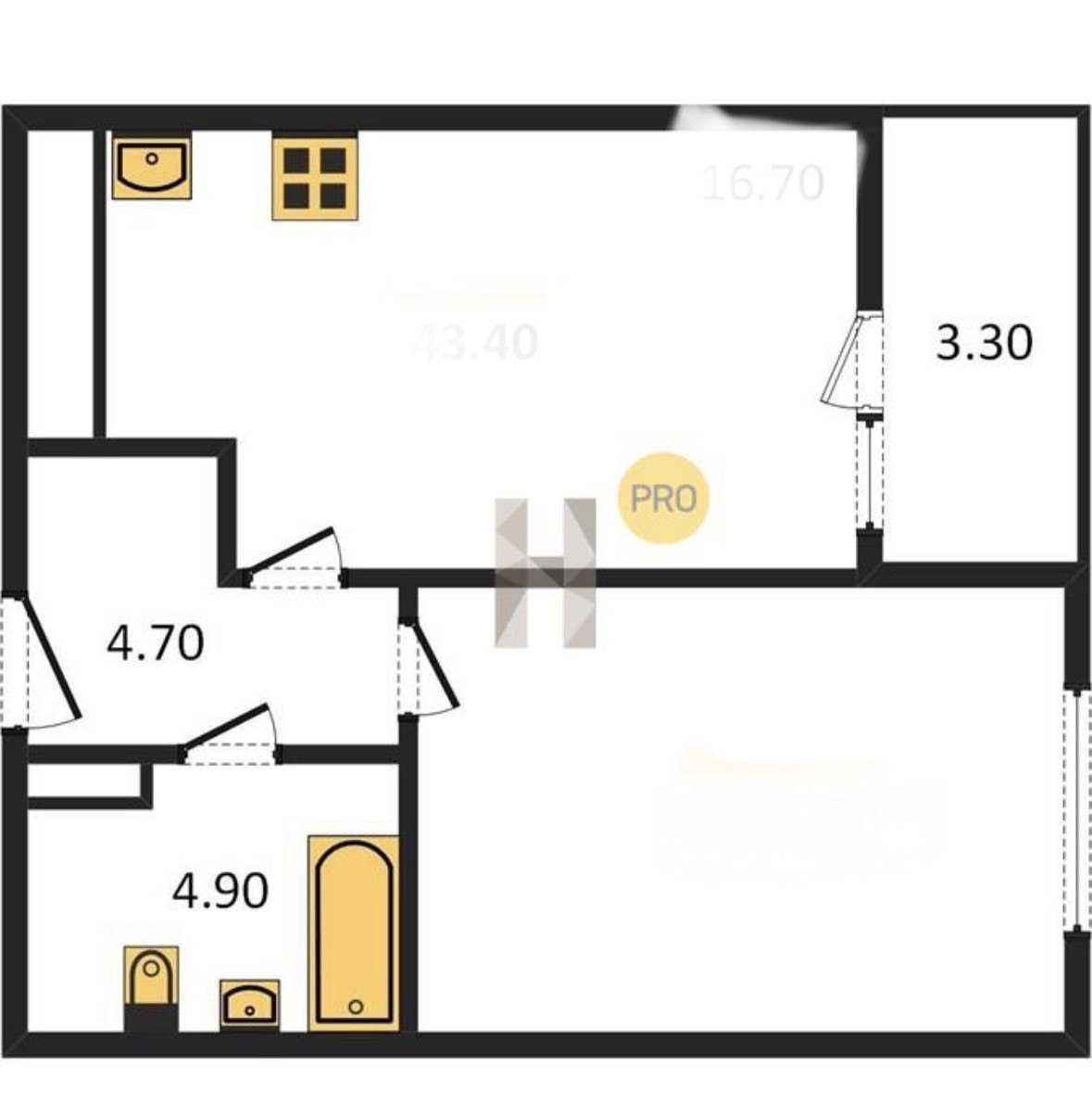 Общая площадь 43 м2