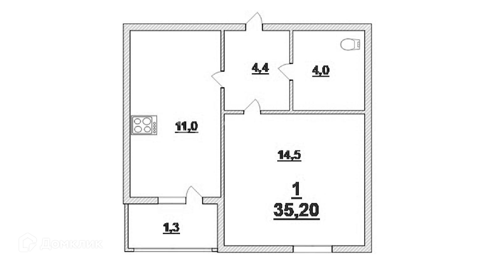 Адрес: Калининград, ул Мирная, д.1к2 (Ленинградский район).Общая площадь — 35,2 м². Кухня — 11 м². Большие комнаты — 14,5 м².Квартира в сером ключе.Санузел совмещенный.